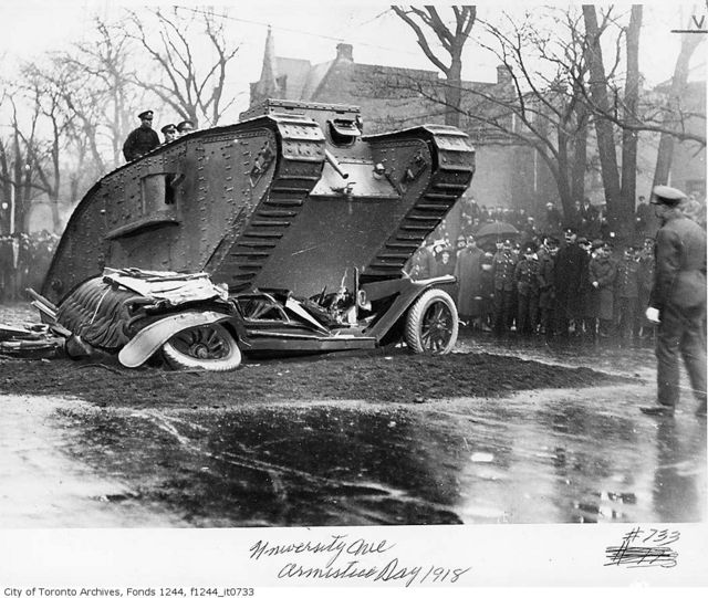 A teenage girl inspects the damage from a serious road accident, 1920s
